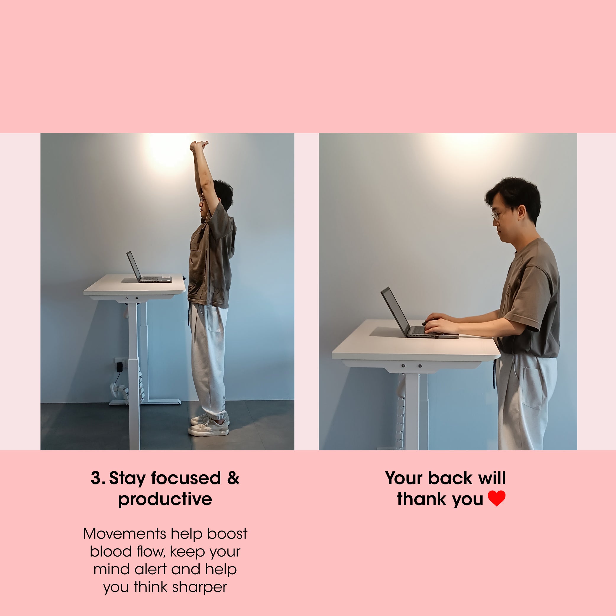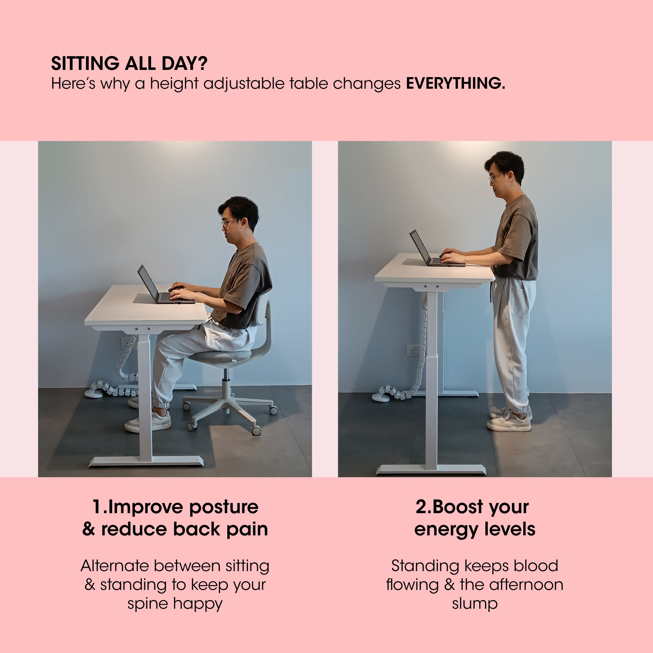 Long hours of sitting can lead to serious health issues, including back pain, poor posture, and fatigue. A height adjustable table allows users to switch between sitting and standing positions, promoting better circulation, reducing strain on the spine, and helping maintain energy throughout the day. This flexibility is especially important for students and professionals who spend extended hours at their desks.